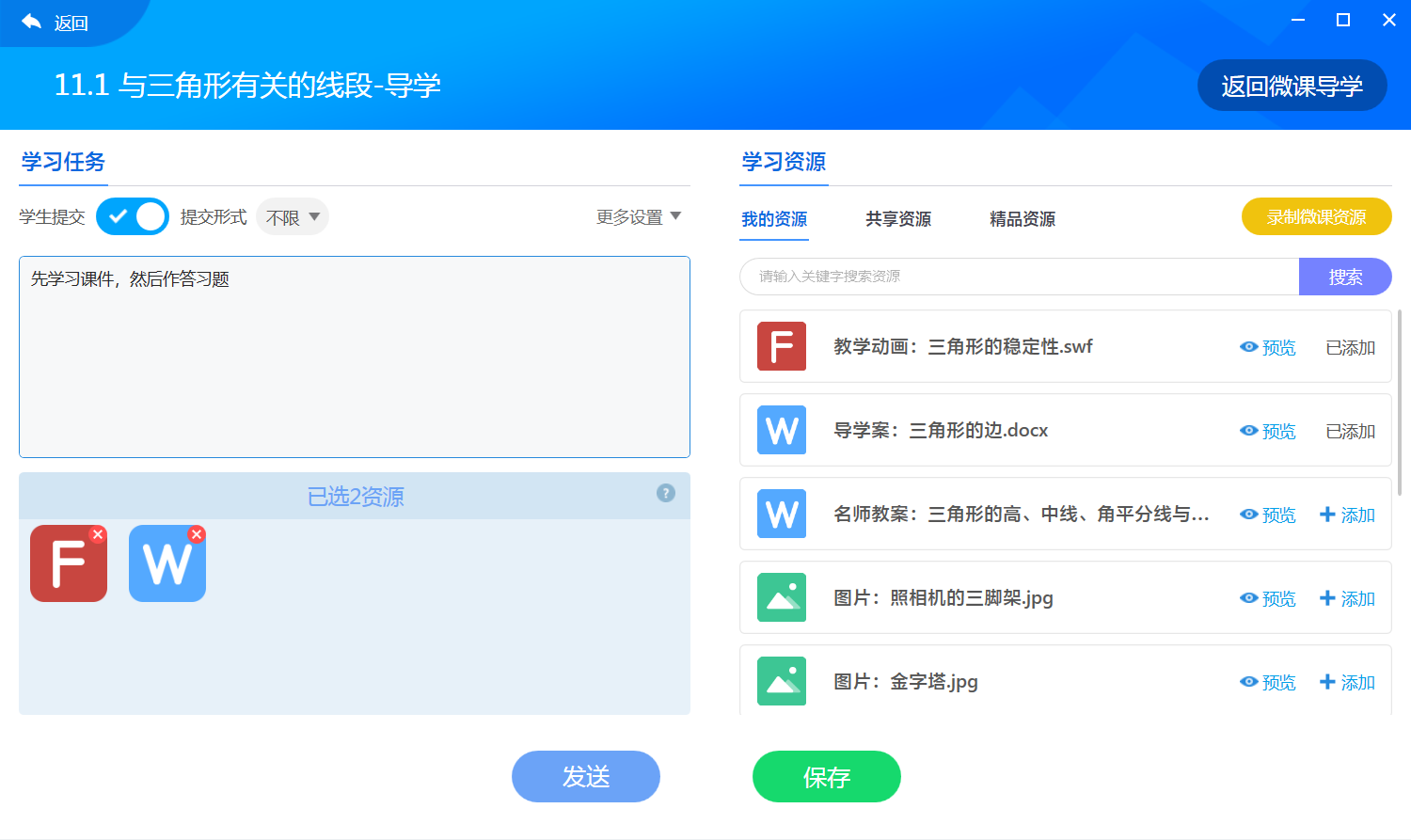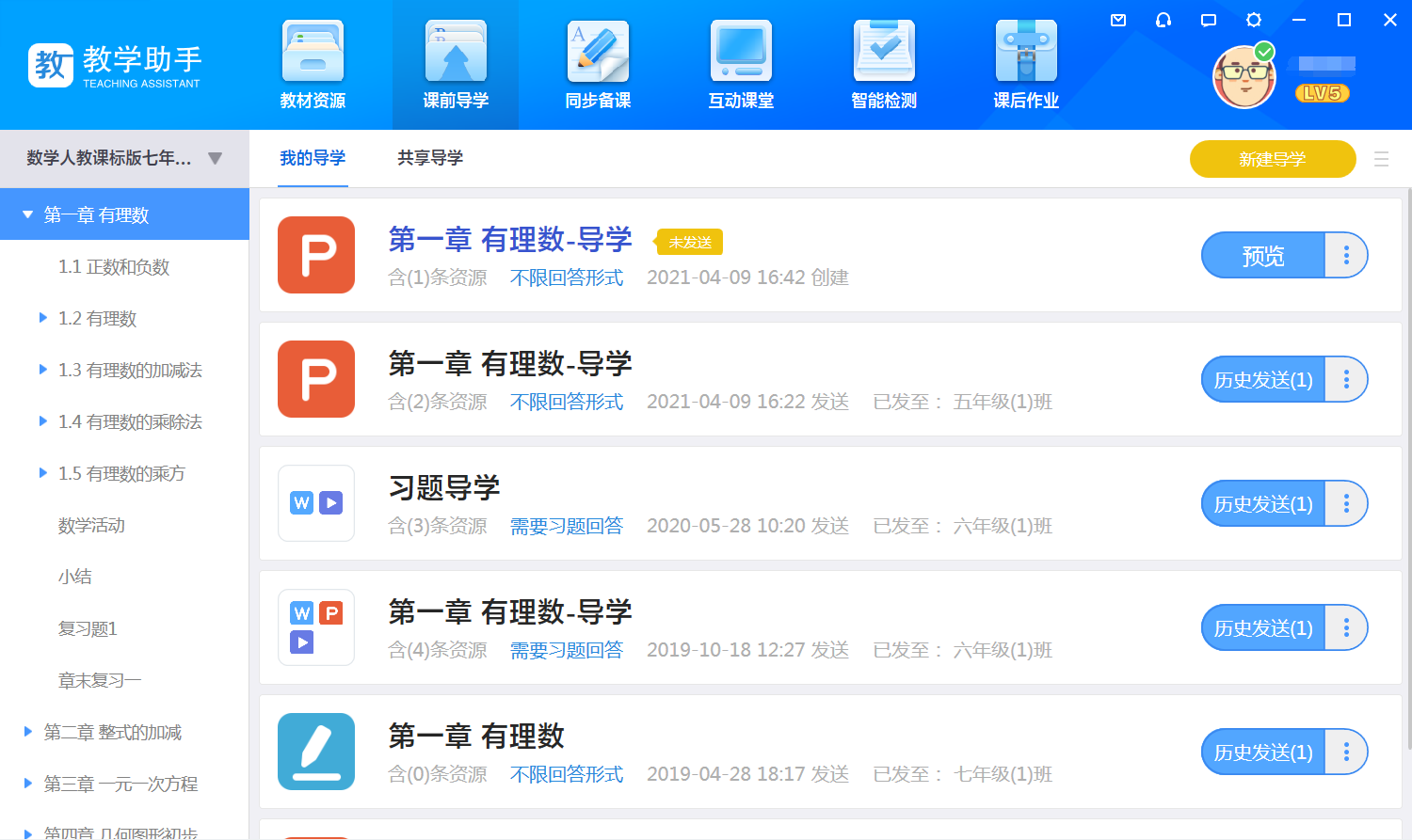 支持创建文本和微课等多样化、个性化导学案,引导学生自主学习;并可匹配检测练习快速诊断预习盲区,从而进行更有针对性地被备课和授课。